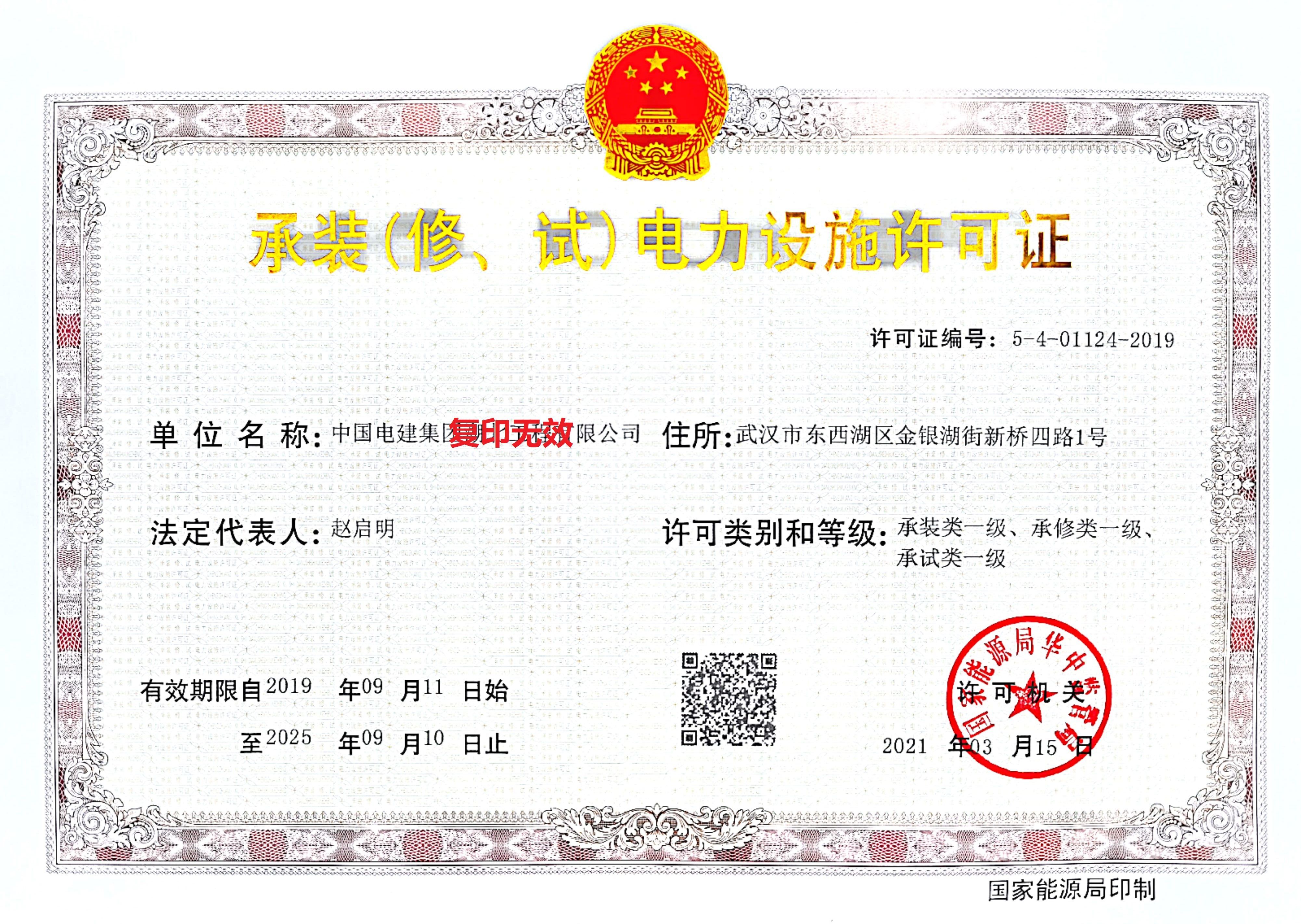 承裝(修、試)類一級(jí)電力設(shè)施許可證