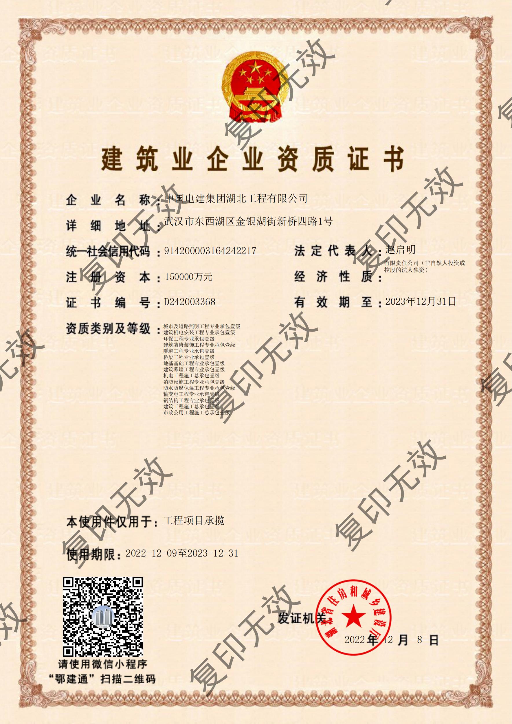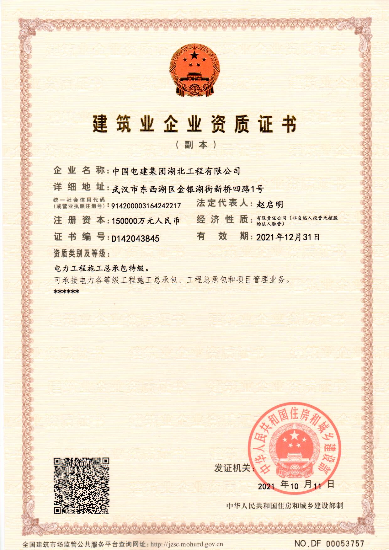 電力工程施工總承包特級(jí)