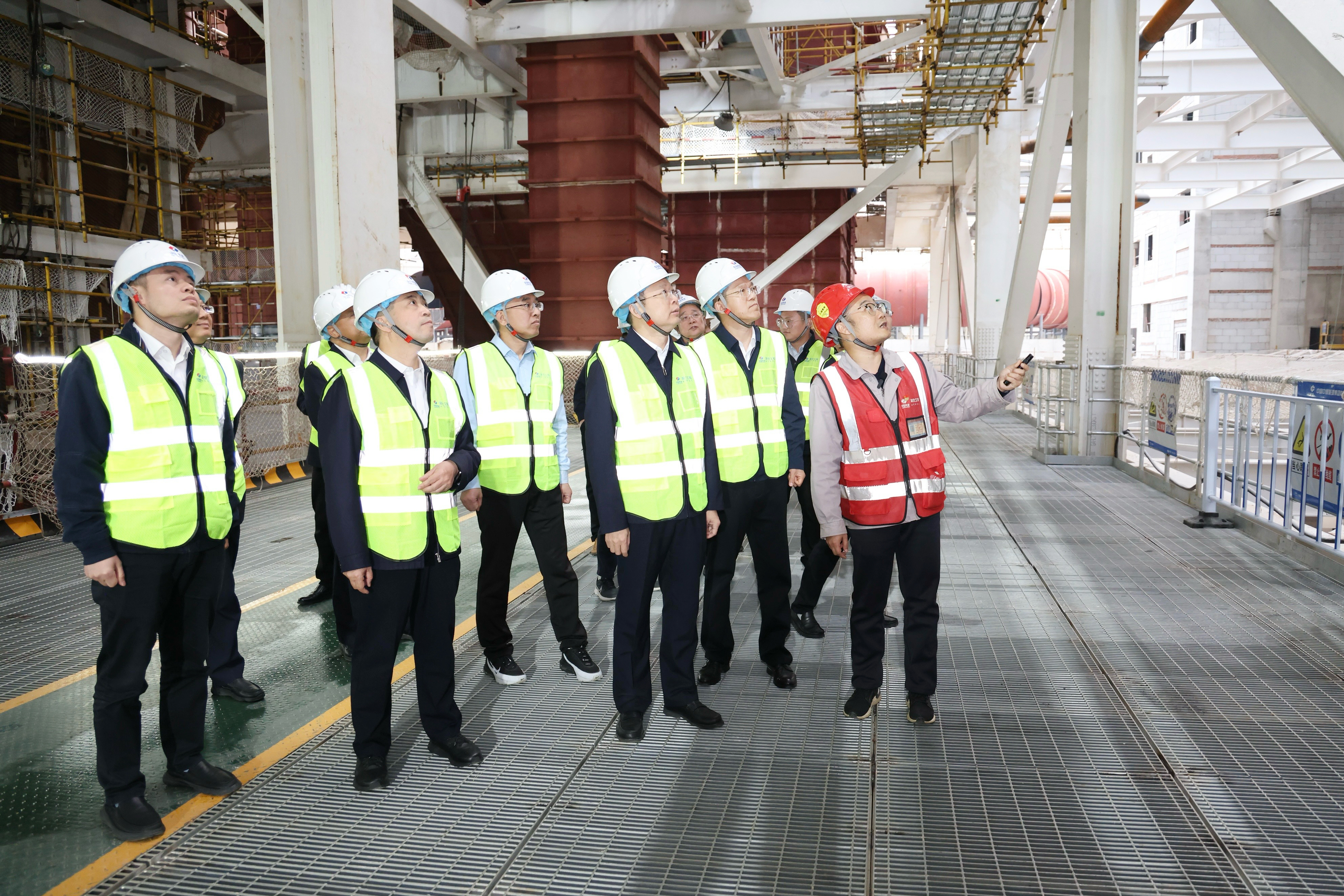 徐鵬程一行深入施工現場,實地查看了項目8號機組鍋爐房、主廠房等施工區域,詳細了解了項目建設進展情況,聽取了相關單位對項目建設關鍵環節和重點工作情況的匯報。同時對子企業自主產業工人的現狀進行了了解和分析,對項目建設成效和項目團隊精神風貌予以肯定,并對下一步工作提出具體要求。